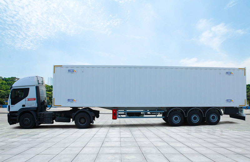 La semi-remorque COMET est équipée d’une structure robuste en tôle pliée, d’un toit bombé pour évacuer l’eau de pluie, d’une étanchéité parfaite, et d’un châssis renforcé. Elle assure également une protection optimale des marchandises sensibles, même dans les climats tropicaux.