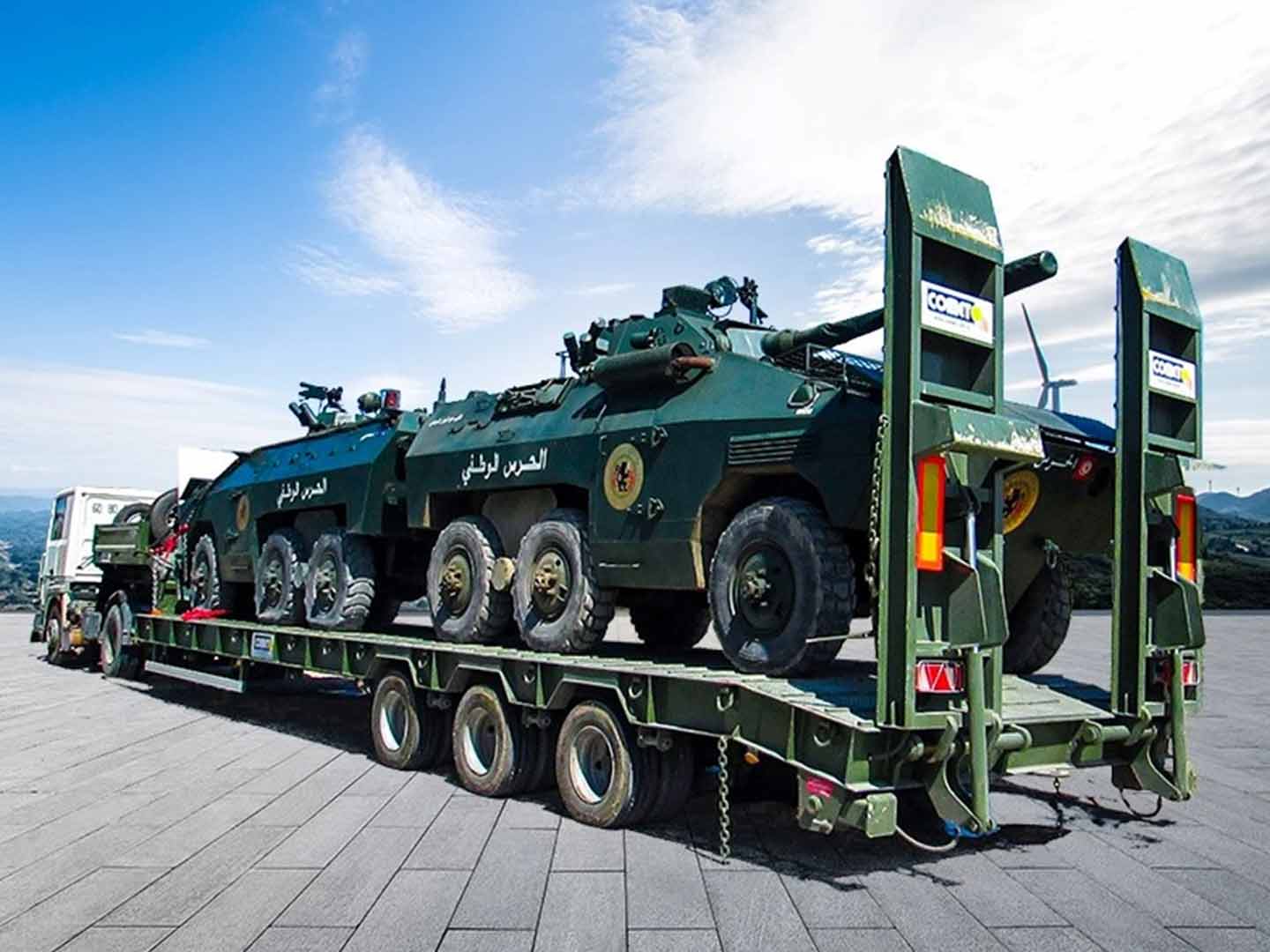 La semi-remorque porte-char de COMET est un véhicule robuste conçu pour transporter des charges extrêmement lourdes, comme les chars militaires, les engins de chantier et autres équipements spécialisés