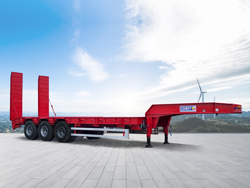 La semi-remorque surbaissée 4 essieux COMET transporte jusqu’à 55 tonnes, avec une plateforme de 1 m de hauteur et 12,5 m de longueur.