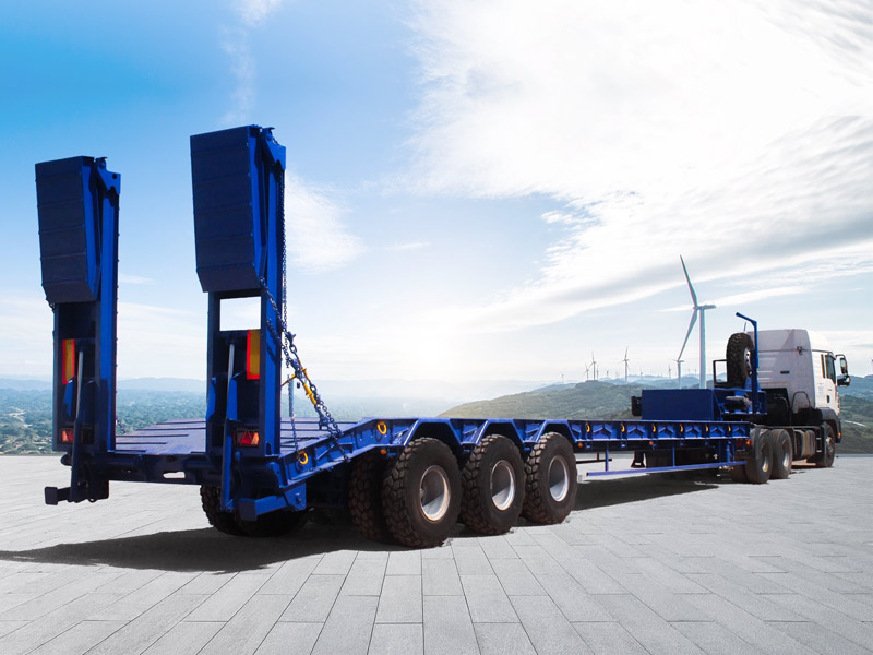Cette remorque est idéale pour le transport d’engins surdimensionnés nécessaires aux projets de routes, barrages ou mines.