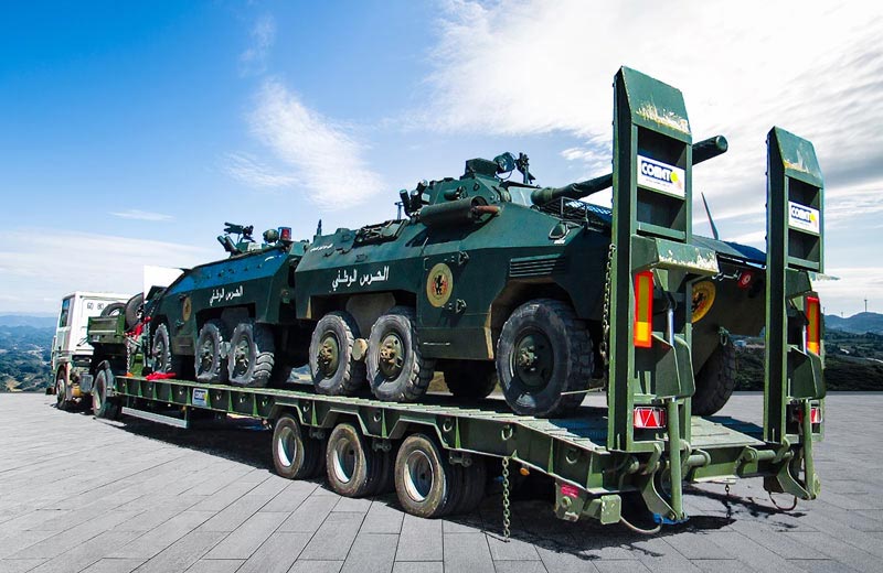 Semi-remorque porte engins tout terrain pour moyen tonnage à trois ou qutre essieux