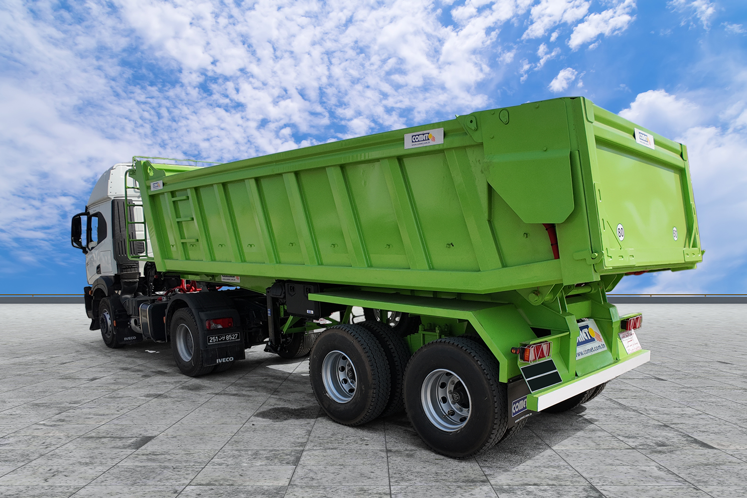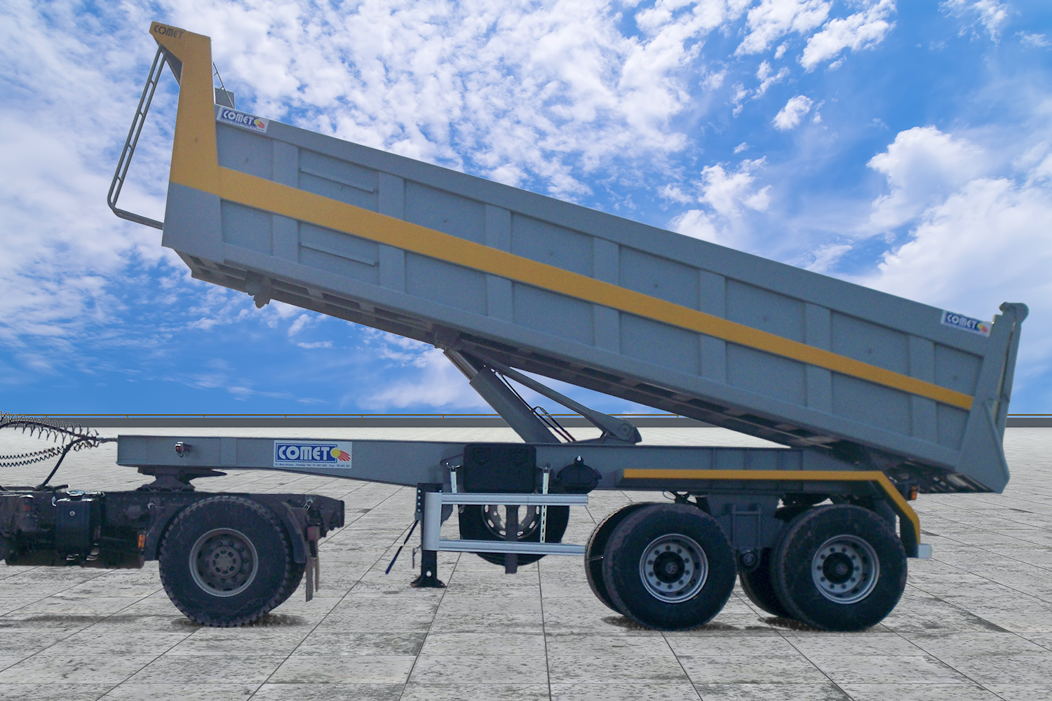 Semi-remorque benne travaux publics a deux ou trois essieux monte jumelle volume 26m3 a 35m3