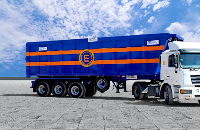 La semi-remorque benne COMET, conçue pour un usage intensif, est idéale pour le transport de déchets métalliques et matériaux recyclables. Sa caisse renforcée en acier et son fond soutenu par deux longerons garantissent durabilité et résistance. Avec un volume de 40 à 60 m³, elle est optimisée pour les déchets lourds et volumineux. Protégée par une tôle anti-abrasion, elle est particulièrement adaptée aux secteurs du recyclage, de la construction et de la gestion des déchets en Afrique subsaharienne.