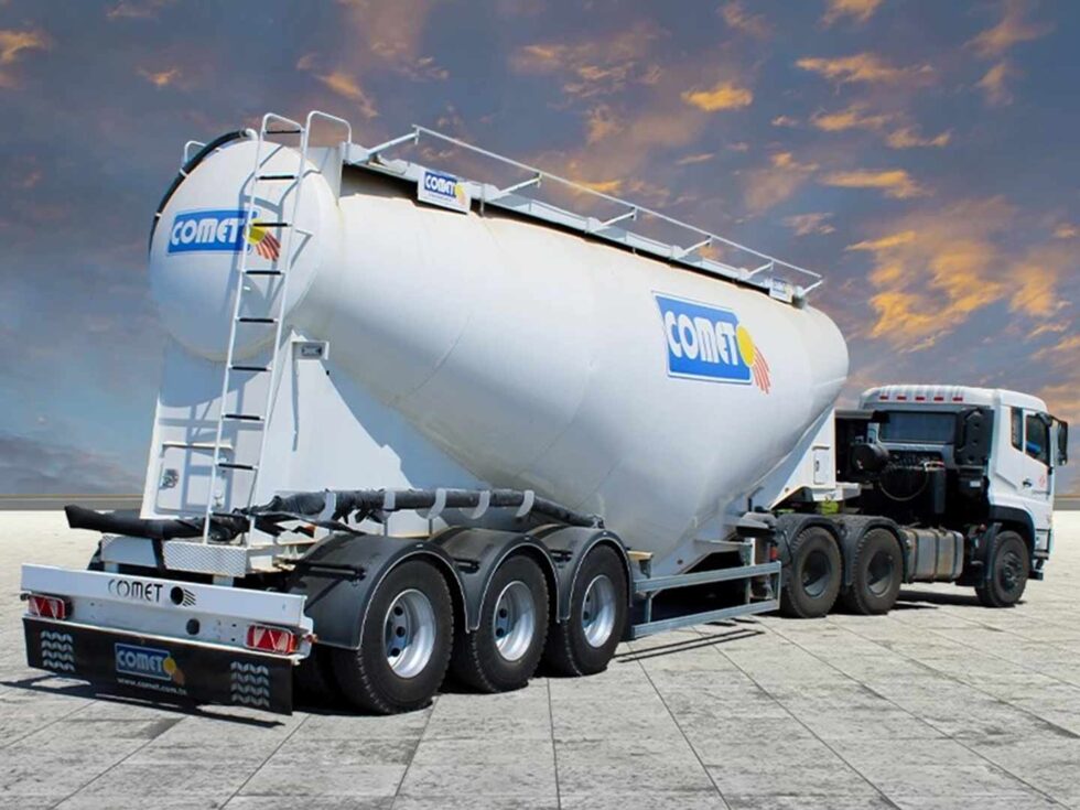 La semi-remorque citerne à ciment COMET est disponible en plusieurs modèles et volumes adaptés aux besoins du marché africain. Deux principales versions sont proposées : la citerne en V et le modèle européen à multi-silos.