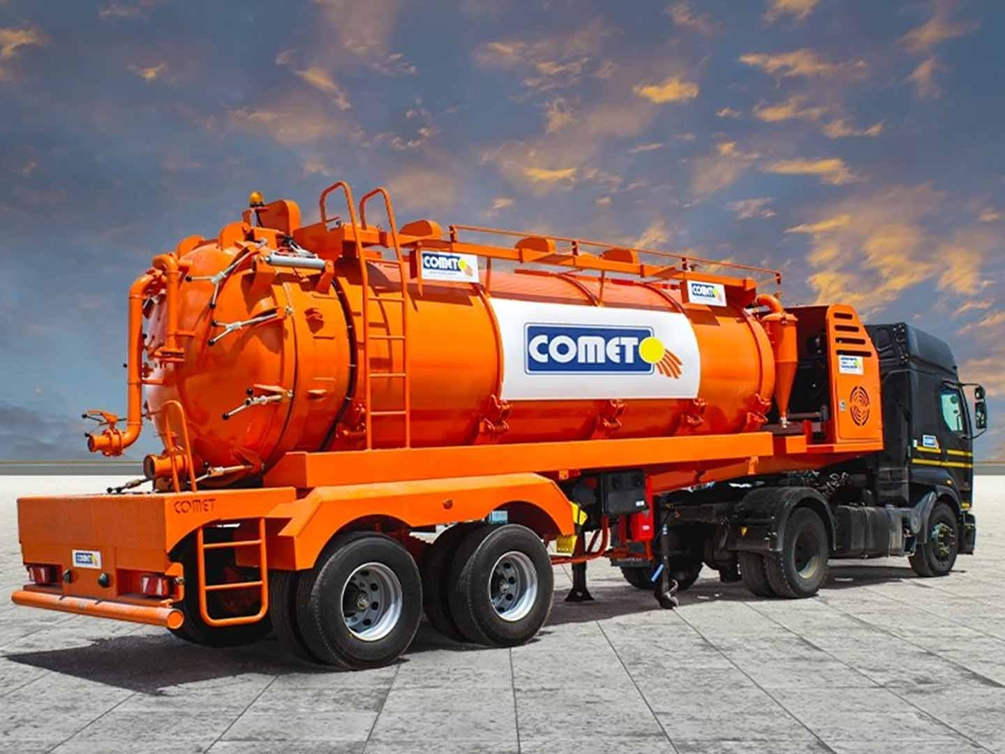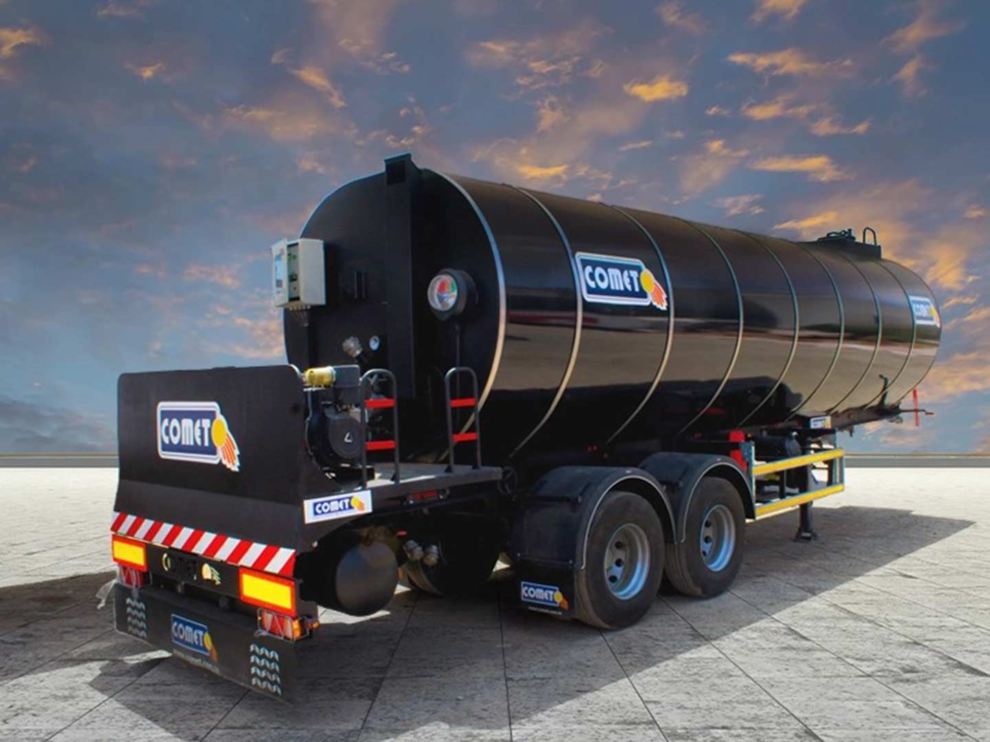 La semi-remorque citerne à bitume COMET est spécialement conçue pour le transport et le stockage des bitumes purs et des émulsions de bitume sur les chantiers en Afrique subsaharienne