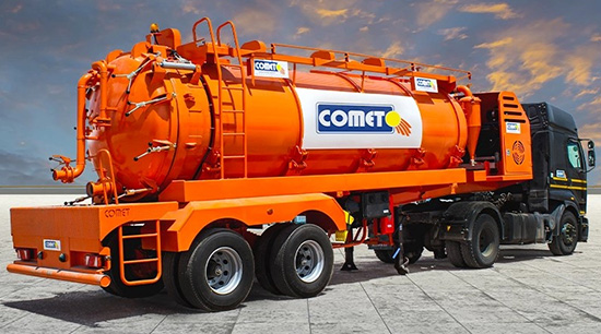 Semi-remorque citerne aspiratrice COMET 20 000 L, pour le transport de boue.