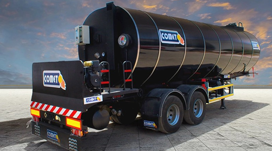La semi-remorque citerne à bitume COMET est conçue et réalisée pour le transport et le stockage.