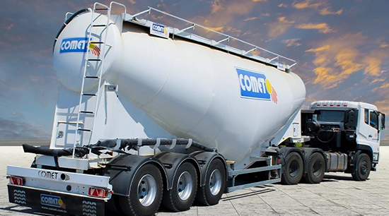 Semi-remorque citerne à ciment50m³ COMET, en acier haute qualité.