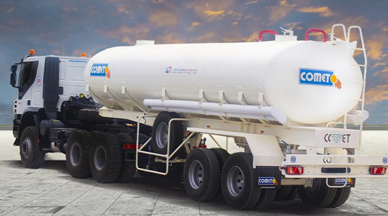 La semi-remorque citerne à eau COMET est dédiée spécialement pour le transport de l’eau.