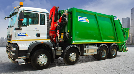 Benne tasseuse COMET, pour la collecte, compression, transport et déchargement des ordures ménagères.