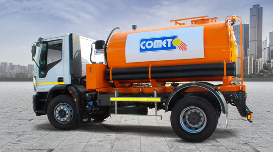 Répandeuse COMET, pour l’épandage des émulsions de bitume sur chantier.