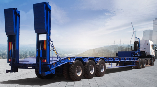 Semi-remorque 4 essieux, 55 tonnes, plateforme 1 m de haut, 12,5 m de long.