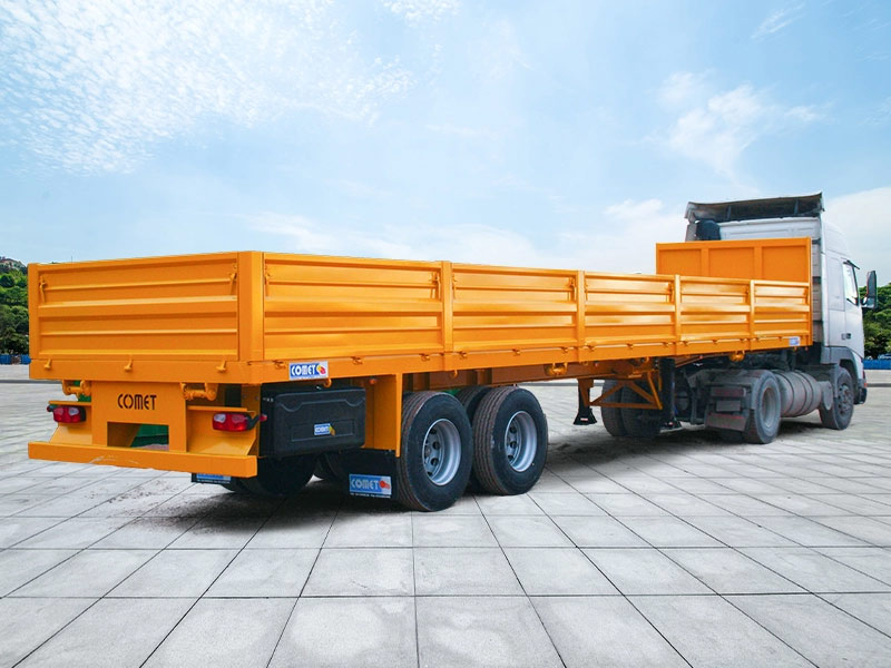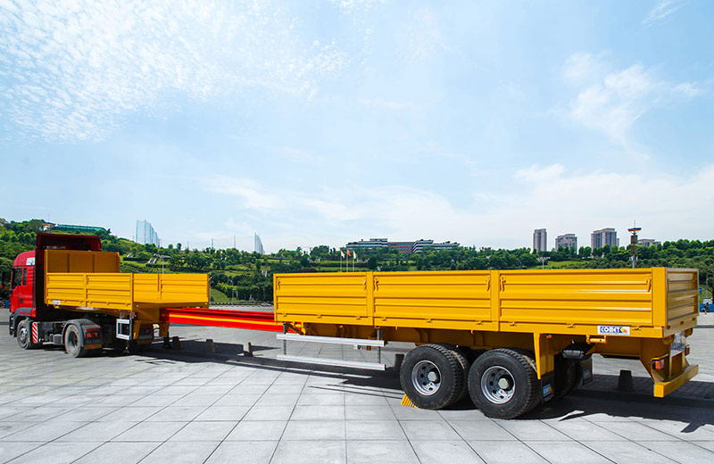 SEMI-REMORQUE PLATEAU SIMPLE EXTENSIBLE A TROIS ESSIEUX POUR LE TRANSPORT DE PIPELINE